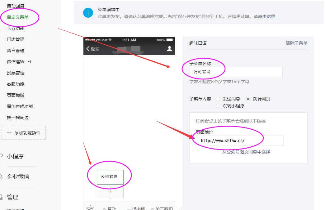 微信公眾號添加菜單跳轉(zhuǎn)網(wǎng)站鏈接的設(shè)置方法?