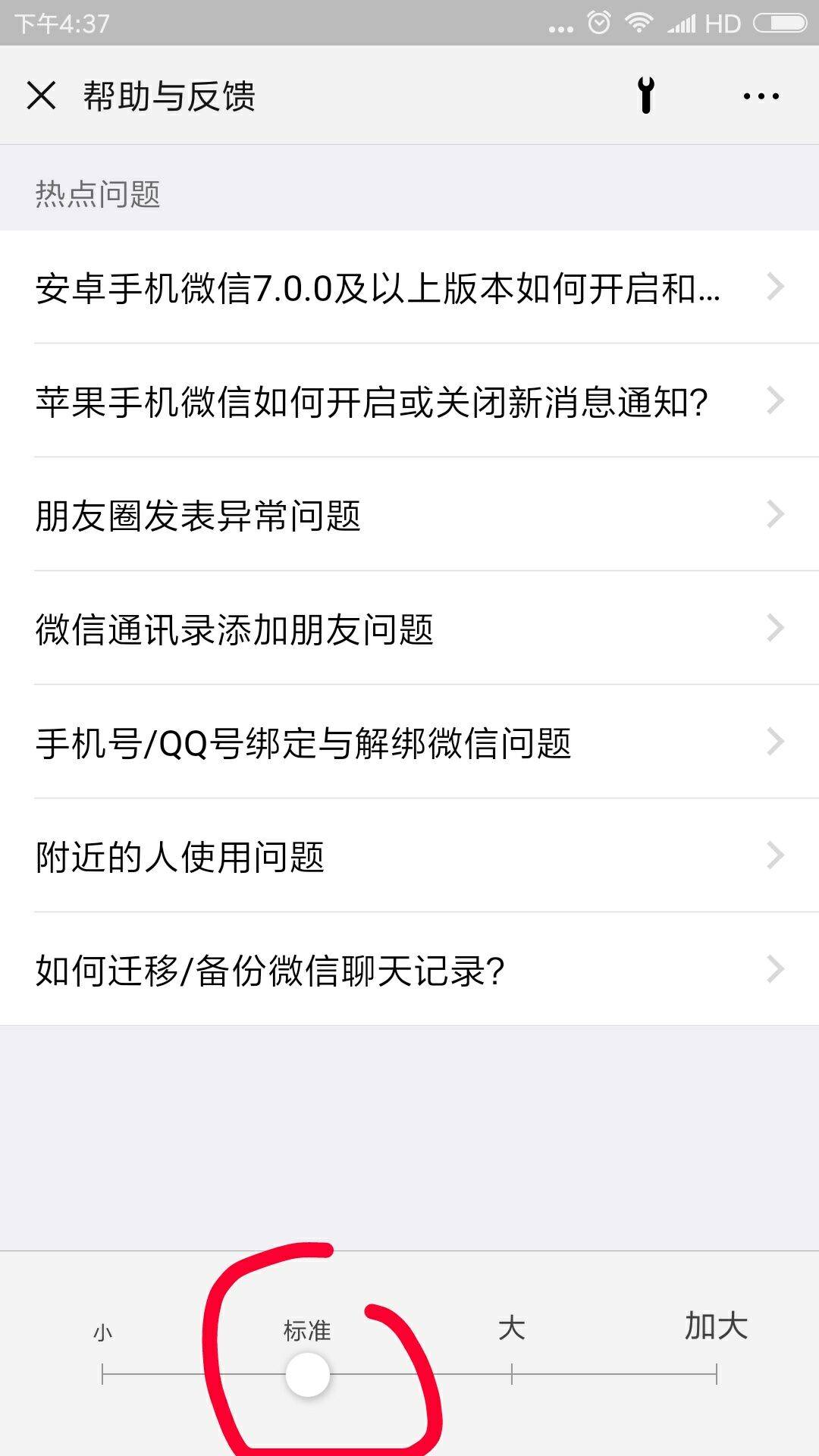 經(jīng)筆者仔細(xì)研究終于找出原因所在,應(yīng)該是在微信打開網(wǎng)頁時不小心或者誤操作設(shè)置了網(wǎng)頁連接內(nèi)容文字變大。具體解決方法請看下圖,根據(jù)圖示很容易操作。