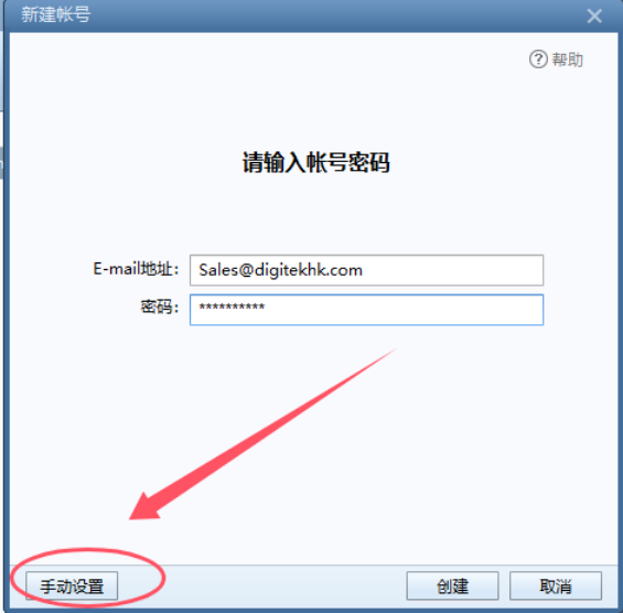根據(jù)界面提示填寫(xiě)--創(chuàng)建郵件賬號(hào),填寫(xiě)"電子郵件地址",例如您的郵局用戶是guest,您公司的域名為yourdomain.com則填寫(xiě)" guest@yourdomain.com,填寫(xiě)后如下圖。