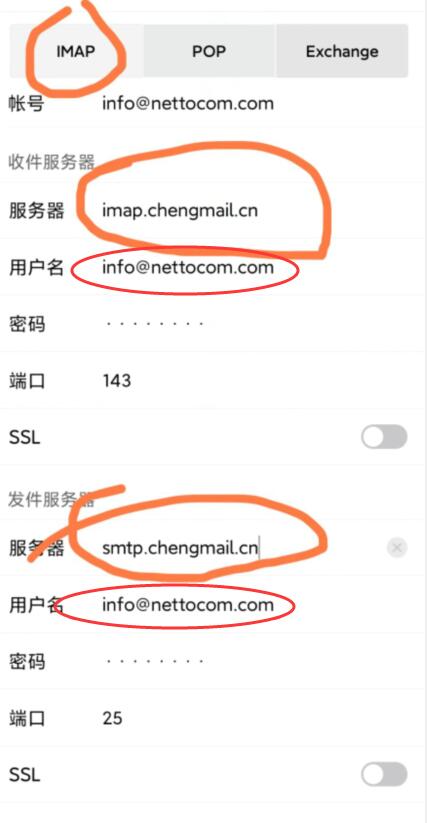 收件服務器:imap.chengmail.cn