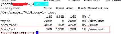 掛載磁盤到wwwroot目錄,掛載命令: mount /dev/vdb /wwwroot/