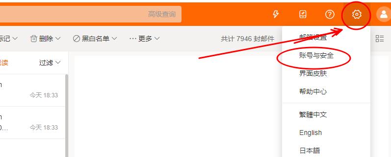 2、在頁(yè)面右上角“設(shè)置”-“賬號(hào)與安全”